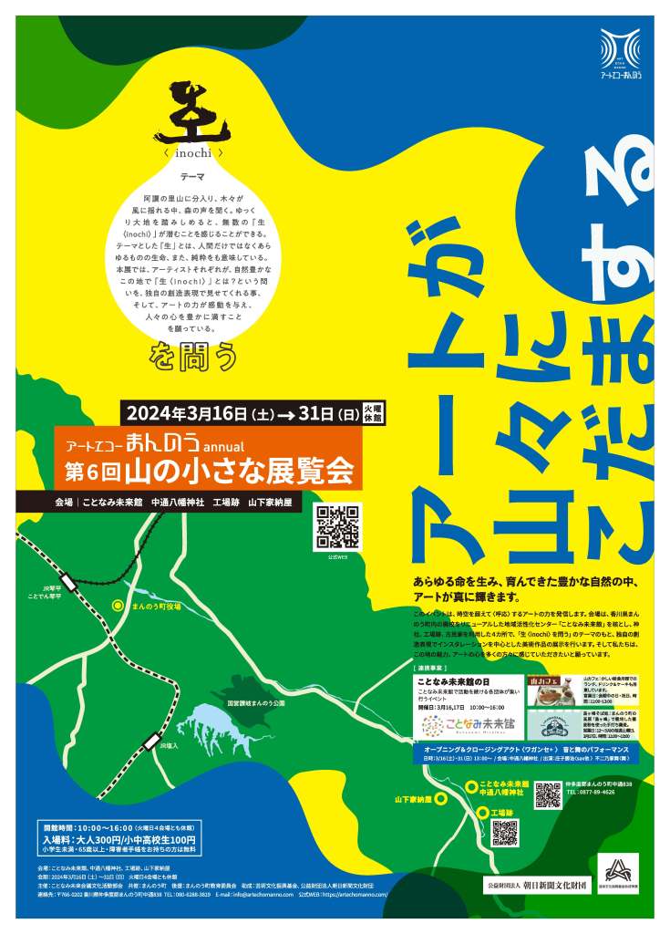 今年も3月16日〜31日まで「山の小さな展覧会」が開催されます。会場は、ことなみ未来館と中心とした旧琴南町中通地域の4つの会場で19名のアーティストに加え地元満濃中学校の生徒作品が展示されます。開催まで数日となりました。準備も大詰めを迎えています。