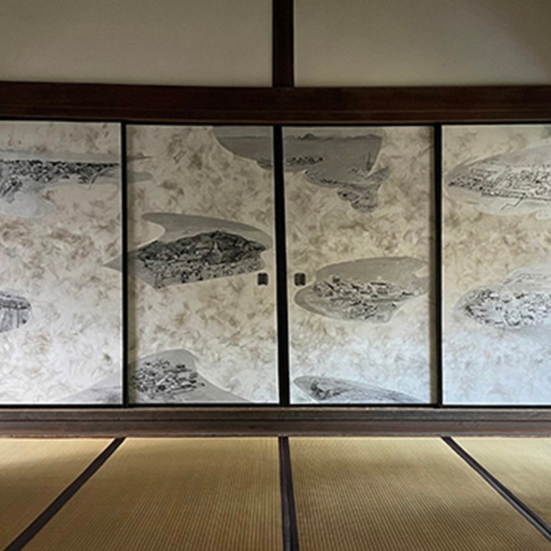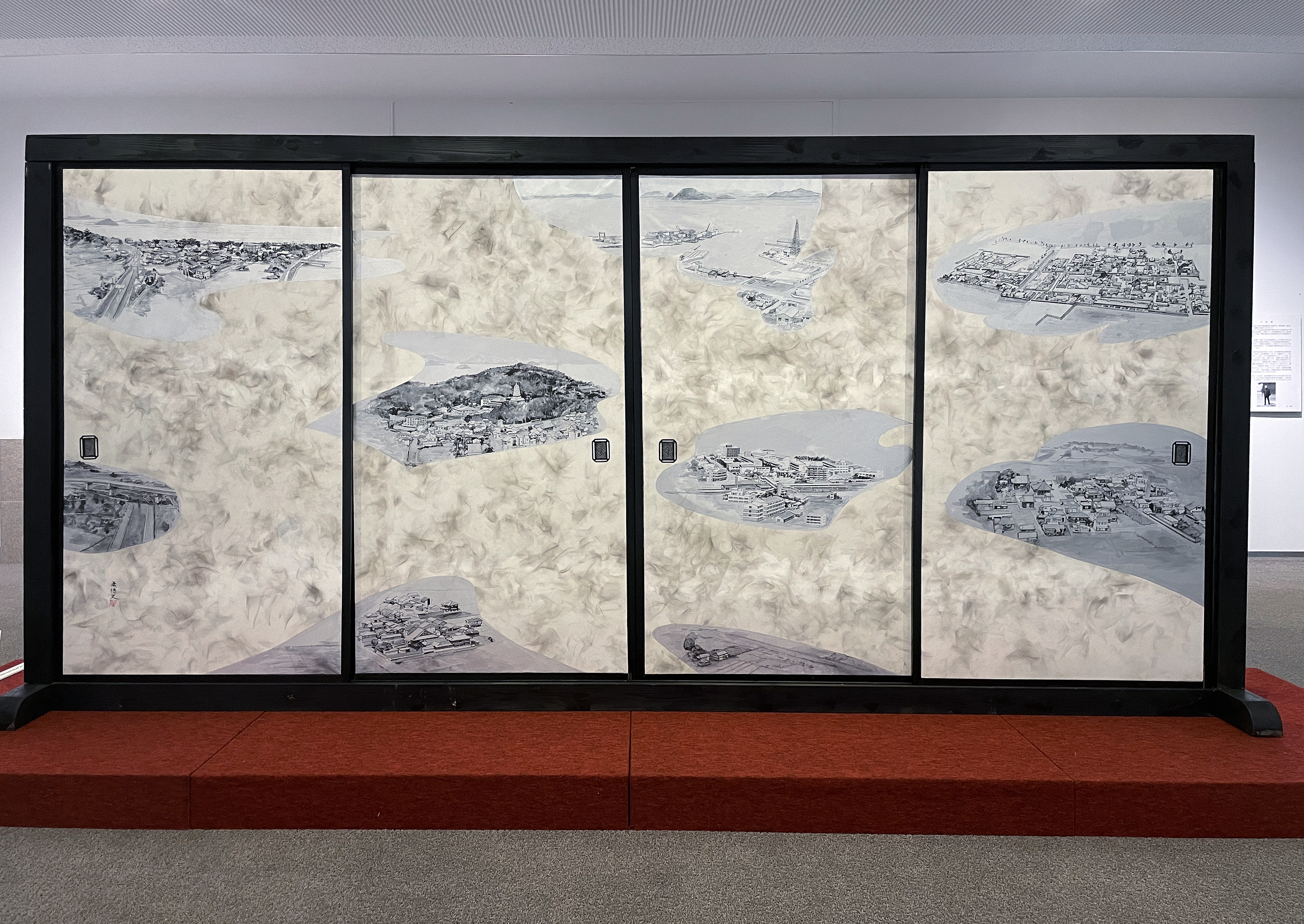 One of the works, A Bird’s-Eye View of Tadotsu, was conceived in homage to the historical significance of the room.