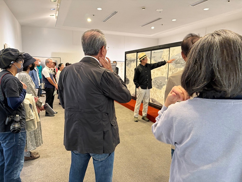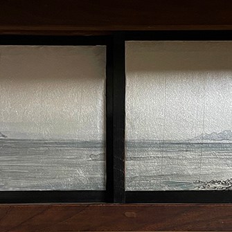 I visited Takamijima, an island floating off the coast of Kaiganji, and composed the scene in a yamato-e style with reverse perspective, distilling the view into a poetic form.