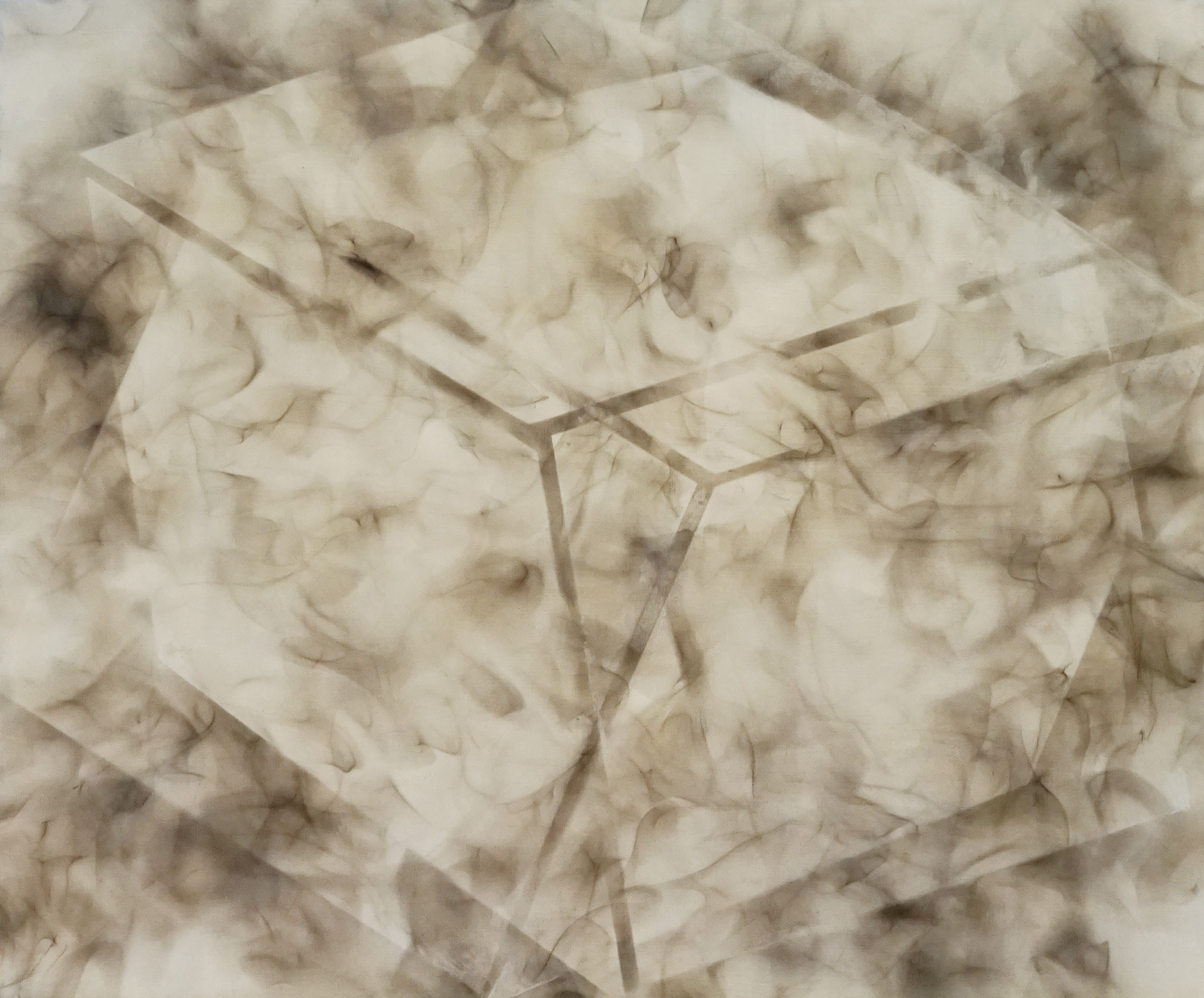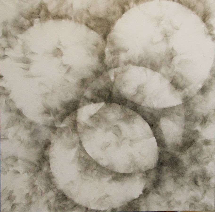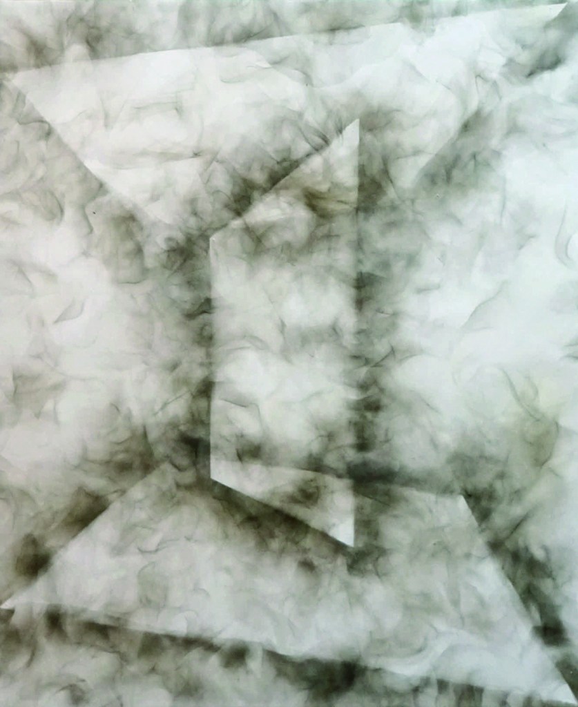 Washi, oil paint, oil smoke
