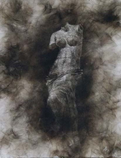キャンバス、油煙、油彩