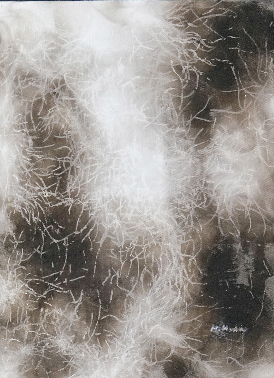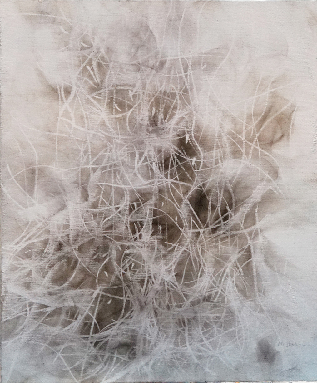 キャンバス、油彩、油煙